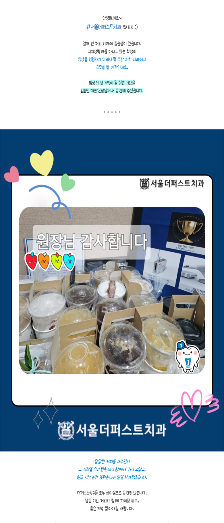 Á¦¸ñ ÀÓ»óÀÇ Ã¹ ±â¾ïÀÌ µÉ ½Ç½À ±â°£, ±èÈ¿¹Î ´ëÇ¥¿øÀå´Ô²²¼­ ÀÀ¿øÇØ Áּ̽À´Ï´Ù.